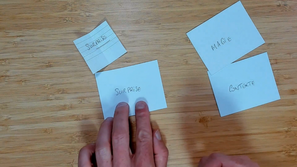 A la fin de votre intervention, vous attirez l'attention sur un bout de papier plié où vous avez inscrit un mot. C'est pour vous le mot le plus important à retenir de votre formation. Vos apprenants sont invités à choisir un mot parmi 10 différents. Croyez-le ou non, mais quel que soit leur choix, il correspondra toujours au mot que vous aviez anticipé. Cet effet marquera l'information désirée dans leur mémoire.